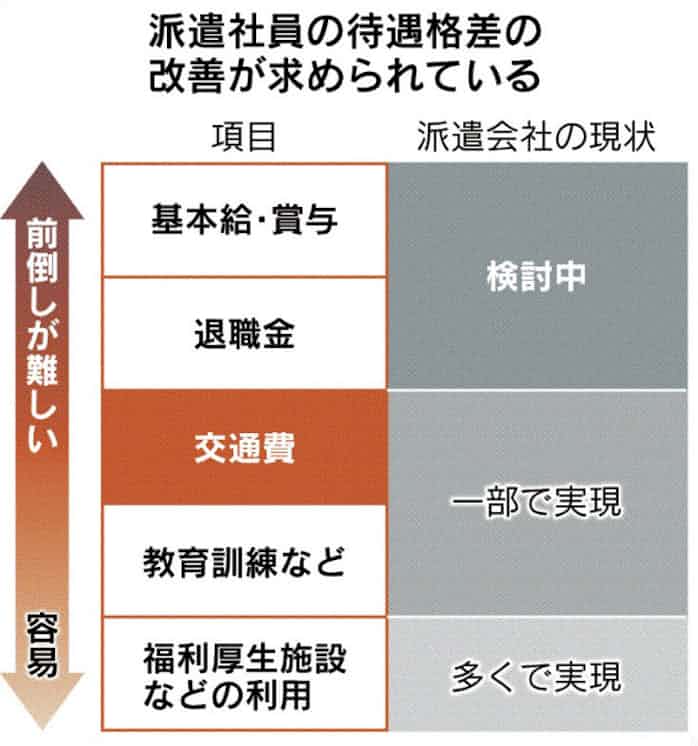 派遣 同一賃金じわり 来春施行 まず交通費支給 日本経済新聞